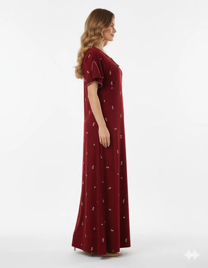 Slip into flowy, breathable 100% Rayon that drapes beautifully and feels cool on skin. Ankle-length, relaxed fit—perfect for sleep, lounging, and easy all-day comfort.