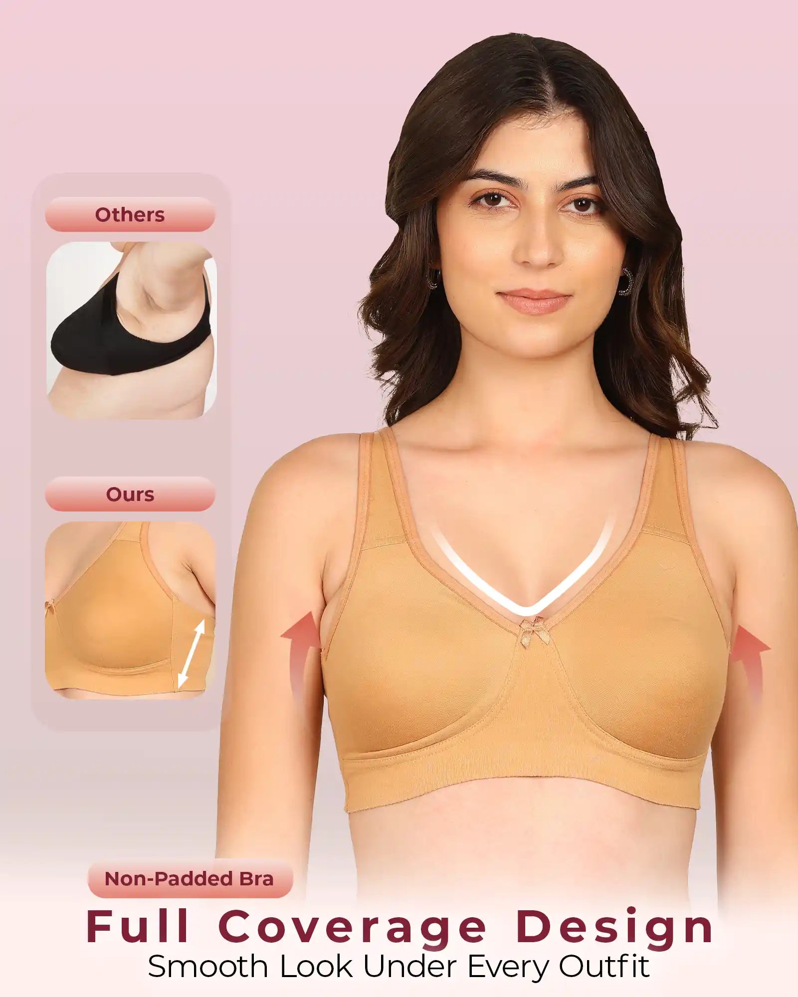 Joomie Bonded Breathable Cotton Plus Size Full Coverage Non-Padded Bra (KB-401-FAWN)