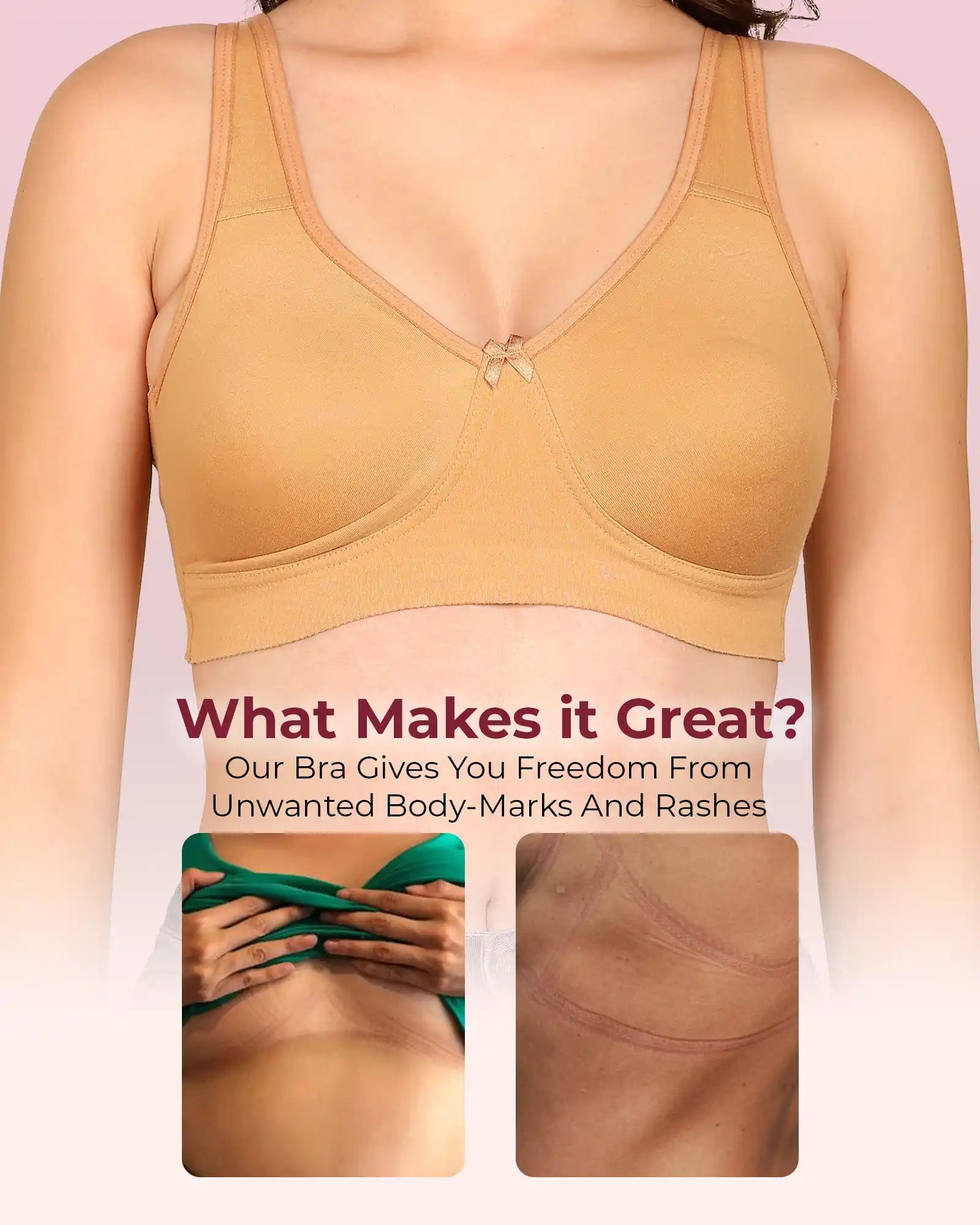 Elastic-Free Bottom Band: No elastic at the underband means no pinching, no body marks and no rashes – just a soft, gentle hold around your ribcage.