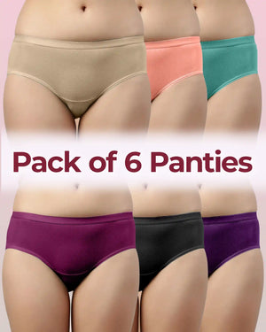 Joomie High Coverage Cotton Spandex Hipster Panty with Stay-Fresh Treatment (Pack of 6)
