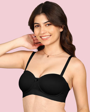Joomie Bonded Demi-Cup Padded Cotton Spandex Bra (KB-91012-BLACK)