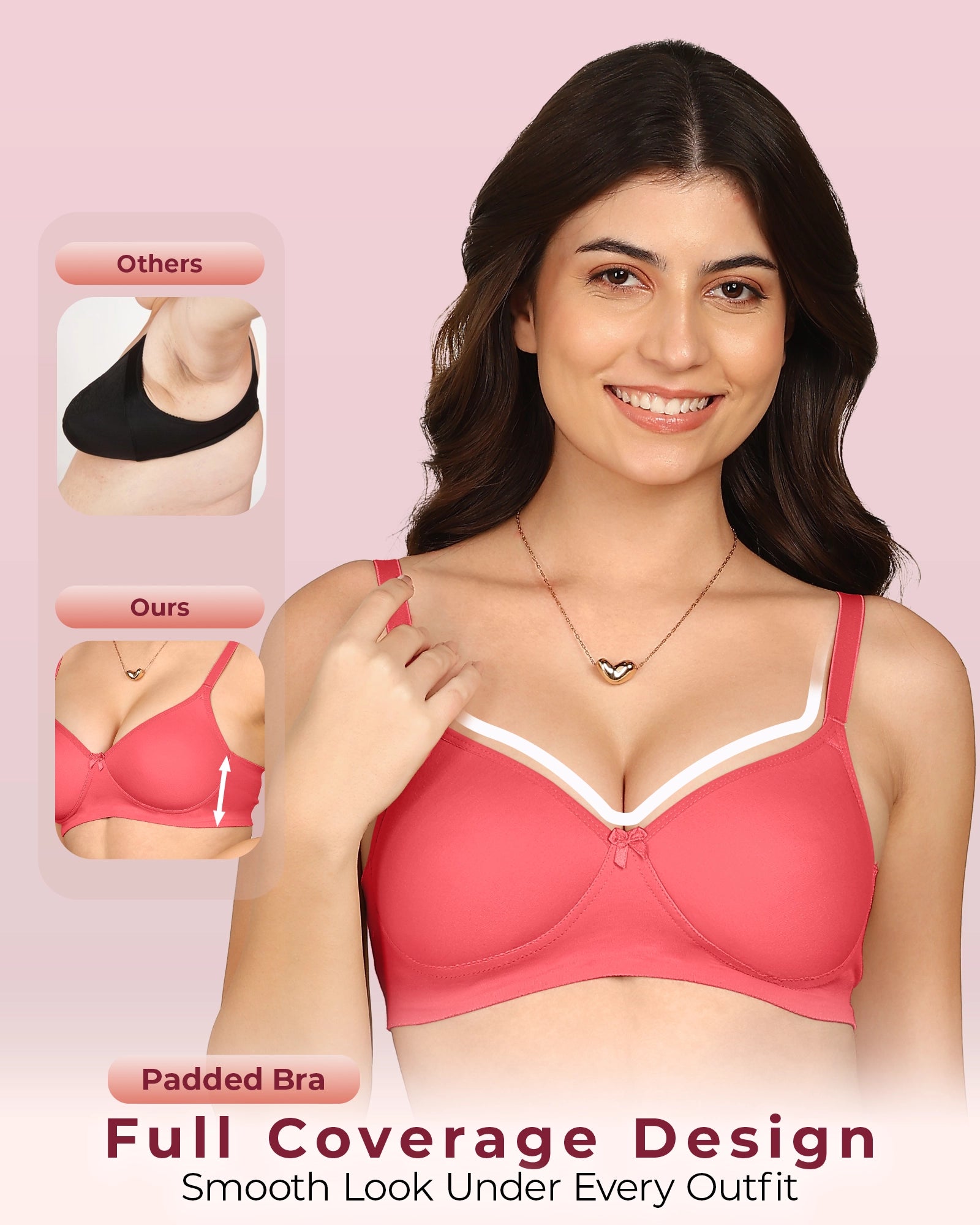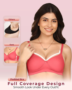 Joomie Bonded Breathable Cotton Full Coverage Padded Bra (KB-1013-CORAL)