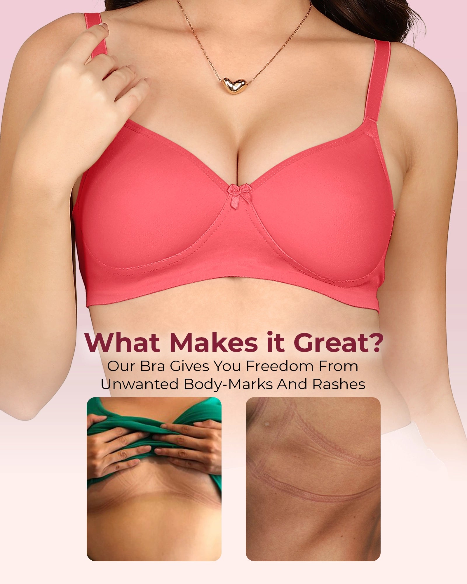 Elastic-Free Bottom Band: Designed without traditional elastic to prevent digging, underbust marks and discomfort — all-day irritation-free support.