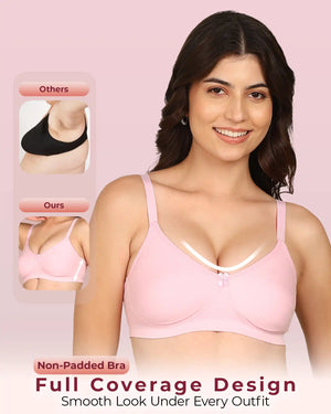 Meet the Joomie Plus Size Full Coverage Non-Padded Bonded Bra – designed especially for women who want gentle support, high coverage and zero discomfort. With bonded seamless technology and elastic-free bands, it gives you a smooth, irritation-free experience, while dual-layer non-padded cups keep your shape natural and beautifully supported.