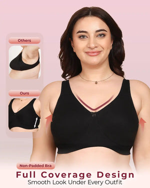 Joomie Bonded Breathable Cotton Plus Size Full Coverage Non-Padded Bra (KB-401-BLACK) | All Shades (4)