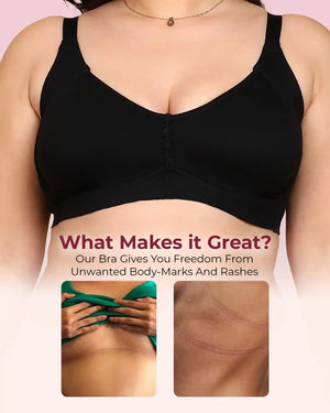 Elastic-Free Bottom Band: The underband is designed without harsh elastic so there’s no pinching, no tight body marks and no rashes—just soft, comfortable support around your ribcage.