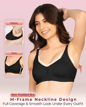 Joomie Bonded Breathable Cotton Plus Size M-Frame Minimiser Non-Padded Bra (KB-405-BLACK) | All Shades (6)