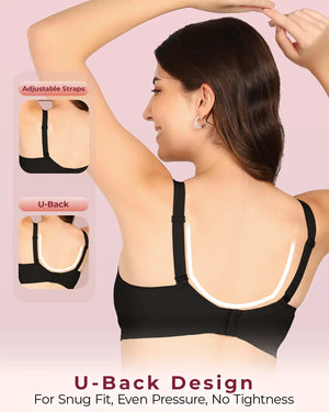 Joomie Bonded Breathable Cotton Plus Size M-Frame Minimiser Non-Padded Bra (KB-405-BLACK)