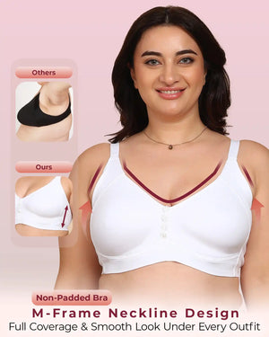 Joomie Bonded Breathable Cotton Plus Size M-Frame Minimiser Non-Padded Bra (KB-405-WHITE)