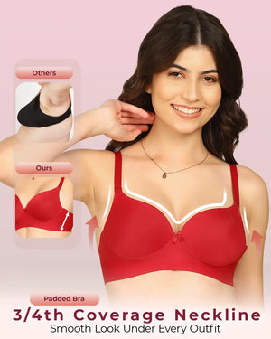 Joomie Bonded Polyamide Push-Up 3/4 Coverage Maximiser Bra (Level 2 Padding (KB-5107-MAROON)