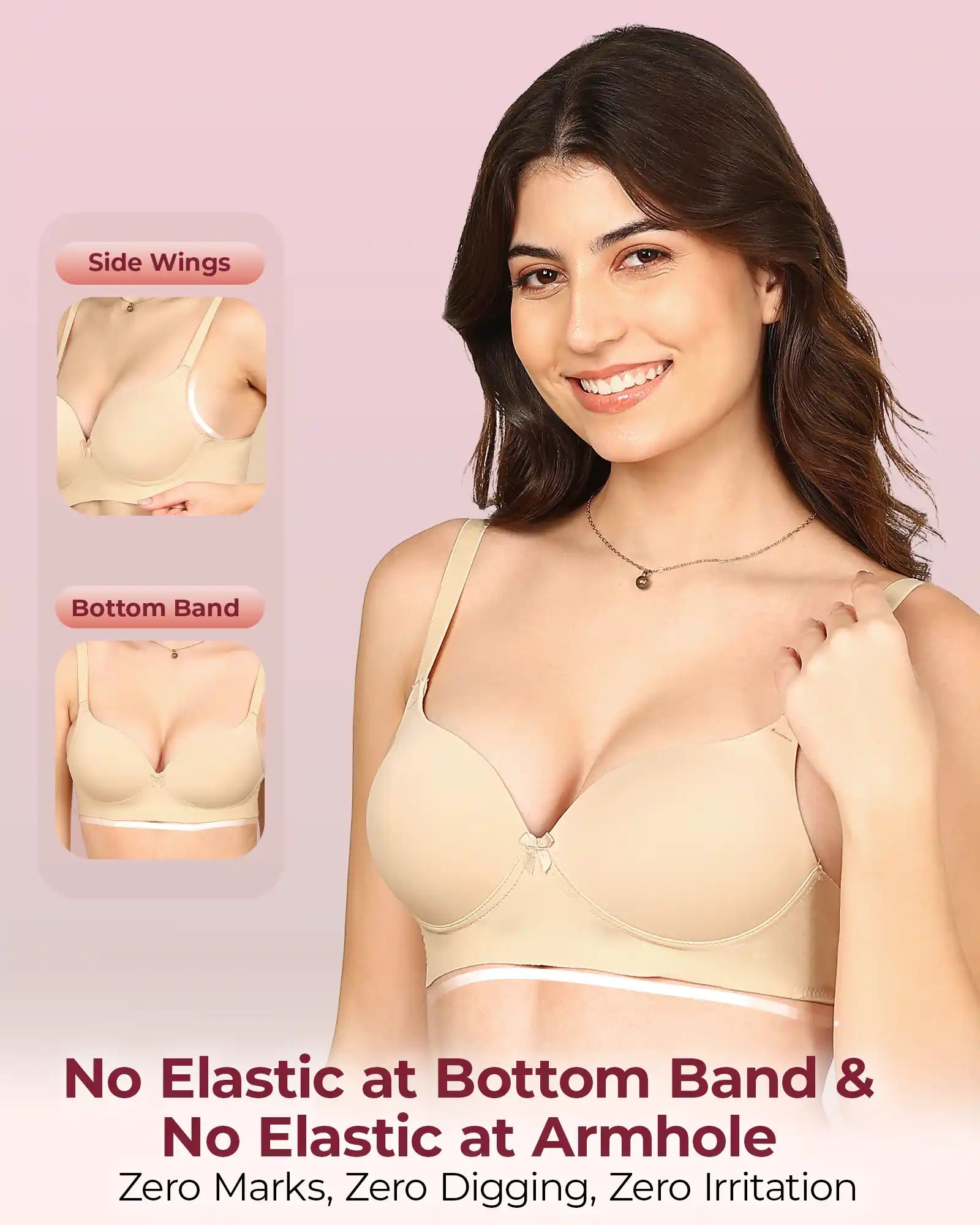 Elastic-Free Bottom Band & Sidewings: Designed without traditional elastic to help prevent digging, rashes and red marks—ideal for irritation-free all-day wear.
