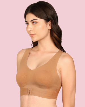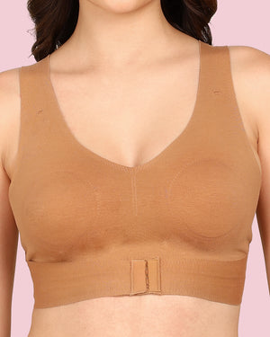 Joomie Cotton Bonded Seamless Non-Padded Invisi-Gym Bra (KB-995-FAWN)